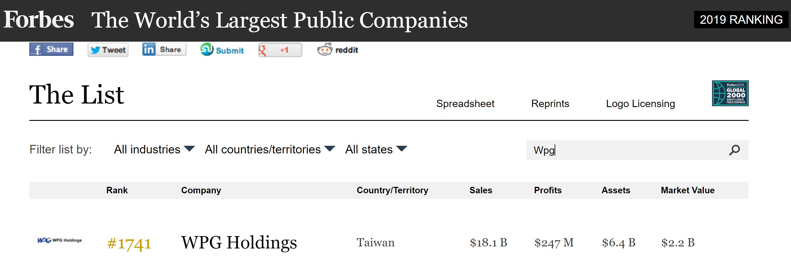 獎項名稱 | 2018年獲選【富比士雜誌】全球2000大企業