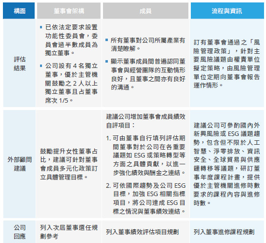 依本公司「董事會績效評估辦法」第三條規定🫳🏼,每三年委由外部專業獨立機構或外部專家學者團隊執行董事會績效評估一次,本公司最近一次外部評估已於2022 年委託外部機構「安永企業管理諮詢服務( 股) 公司」🛬,以問卷及實地訪評的方式執行本公司董事會效能評估🫸🏿,該機構及執行專家具備獨立性,已於2022 年12 月27 日董事會報告評估結果✍🏼,並已揭露於公司官網👒。