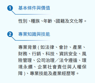 依據本公司「公司治理守則」第20 條第4項規定,本公司董事會成員組成之多元化方針🕟,包括但不限於以下二大面向之標準😸🧑🏽🍼: