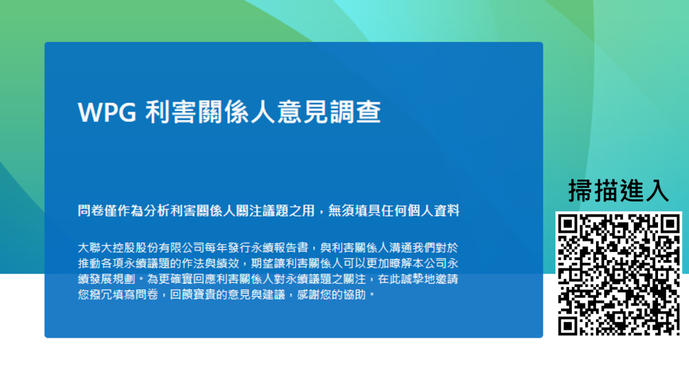 為使利害關係人更加了解 彩神vll控股股份有限公司 對於推動永續的各種做法,請您撥冗2分鐘,協助回饋寶貴之意見與建議,以利本公司了解您所關注的議題🎁,使本公司能夠與利害關係人達成有效的溝通。