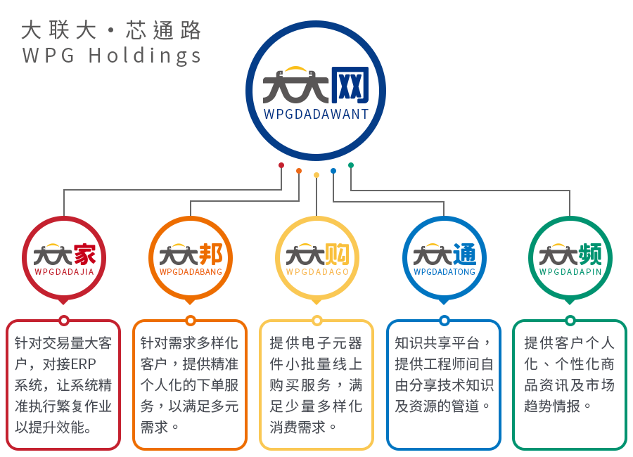2015年,大联大正式启动数字化转型🏺,并于2019年推出在线数字化平台“大大网”,作为一个串连产业圈资讯的全链路透明平台,“大大网”由大大家、大大邦🏤🚃、大大购💆🏽🤏、大大通🐈⬛👇🏽、大大频五个区块构成,目前大大通已云集了约1500个方案,可以为客户快速提供资讯化服务🥰🤹🏽♂️。