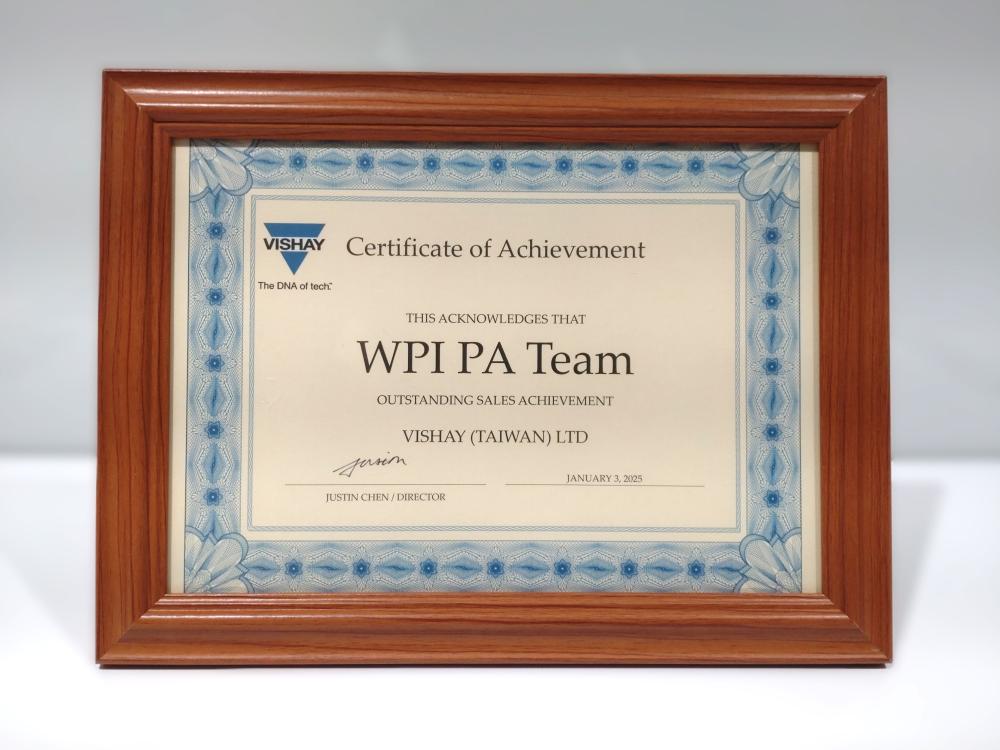 獎項名稱 | WPI PA Team - OUTSTANDING SALES ACHIEVEMENT